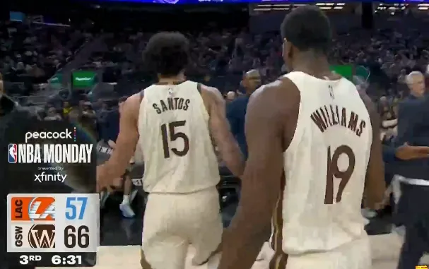 第三节比赛中,吉纳森-威廉姆斯投进2记三分,又造成犯规两罚全中得到10分。